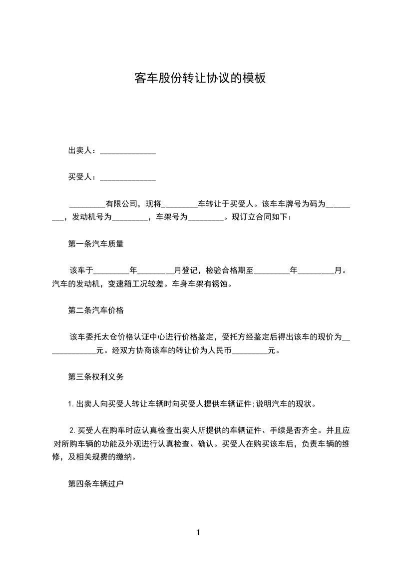 _________有限公司,现将_________车转让于买受人。该车车牌号为码为_________,发动机号为_________,车架号为_________。现订立合同如下: