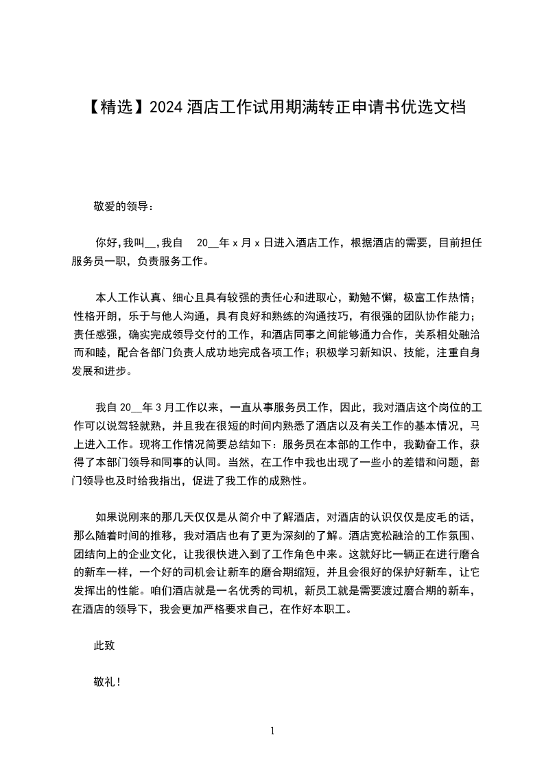 你好,我叫__,我自20__年x月x日进入酒店工作,根据酒店的需要,目前担任服务员一职,负责服务工作。