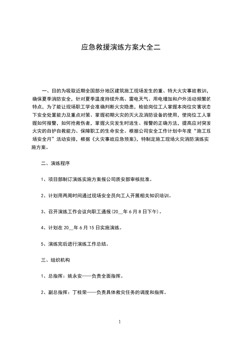 4、计划在20__年6月15日实施演练。