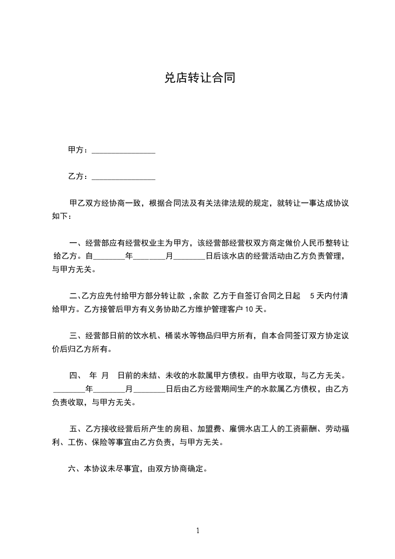 一、经营部应有经营权业主为甲方,该经营部经营权双方商定做价人民币整转让给乙方。自________年________月________日后该水店的经营活动由乙方负责管理,与甲方无关。