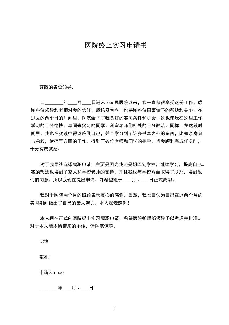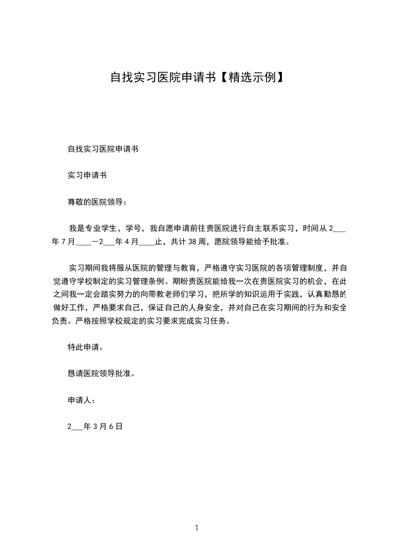 我是________专业学生,学号,我自愿申请前往贵医院进行自主联系实习,时间从________年____月____―________年____月____止,共计38周,愿院领导能给予批准。