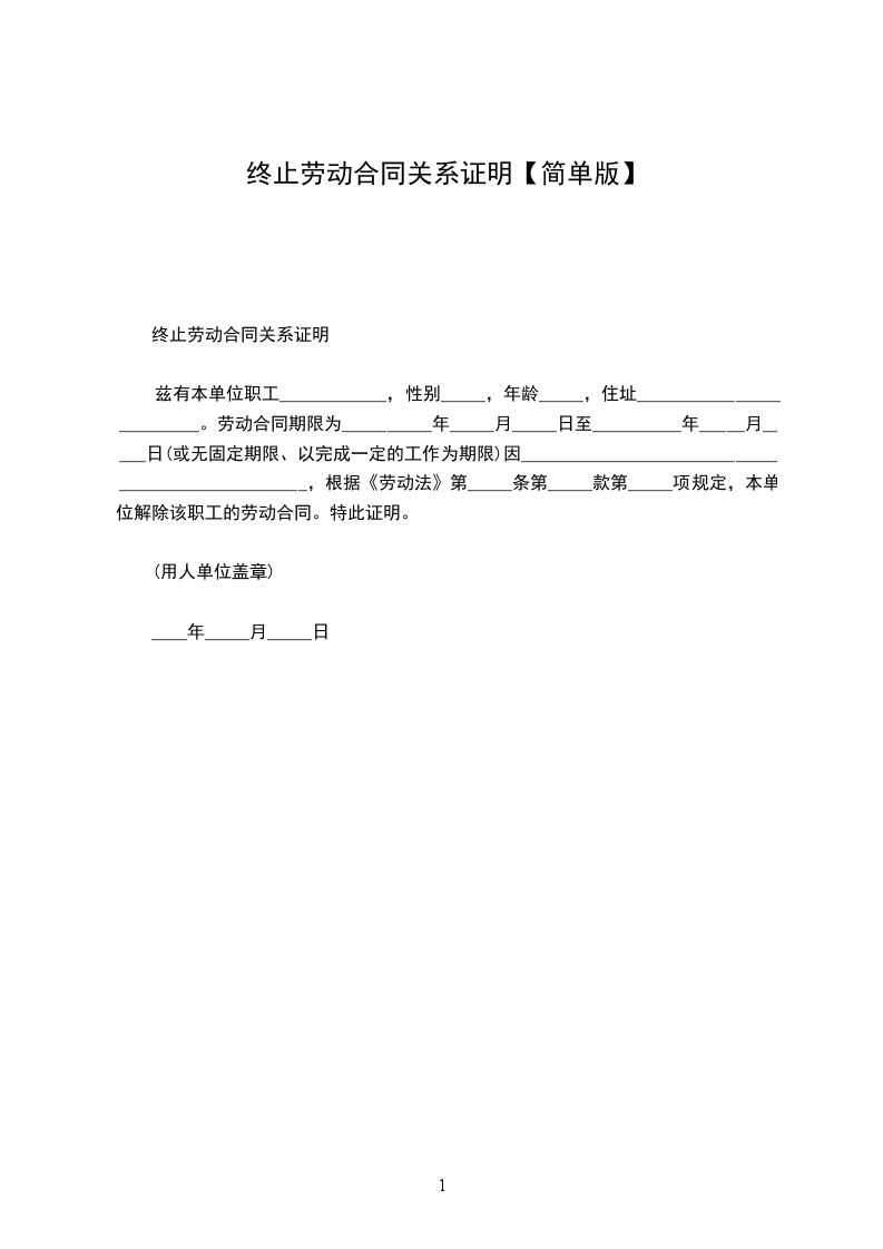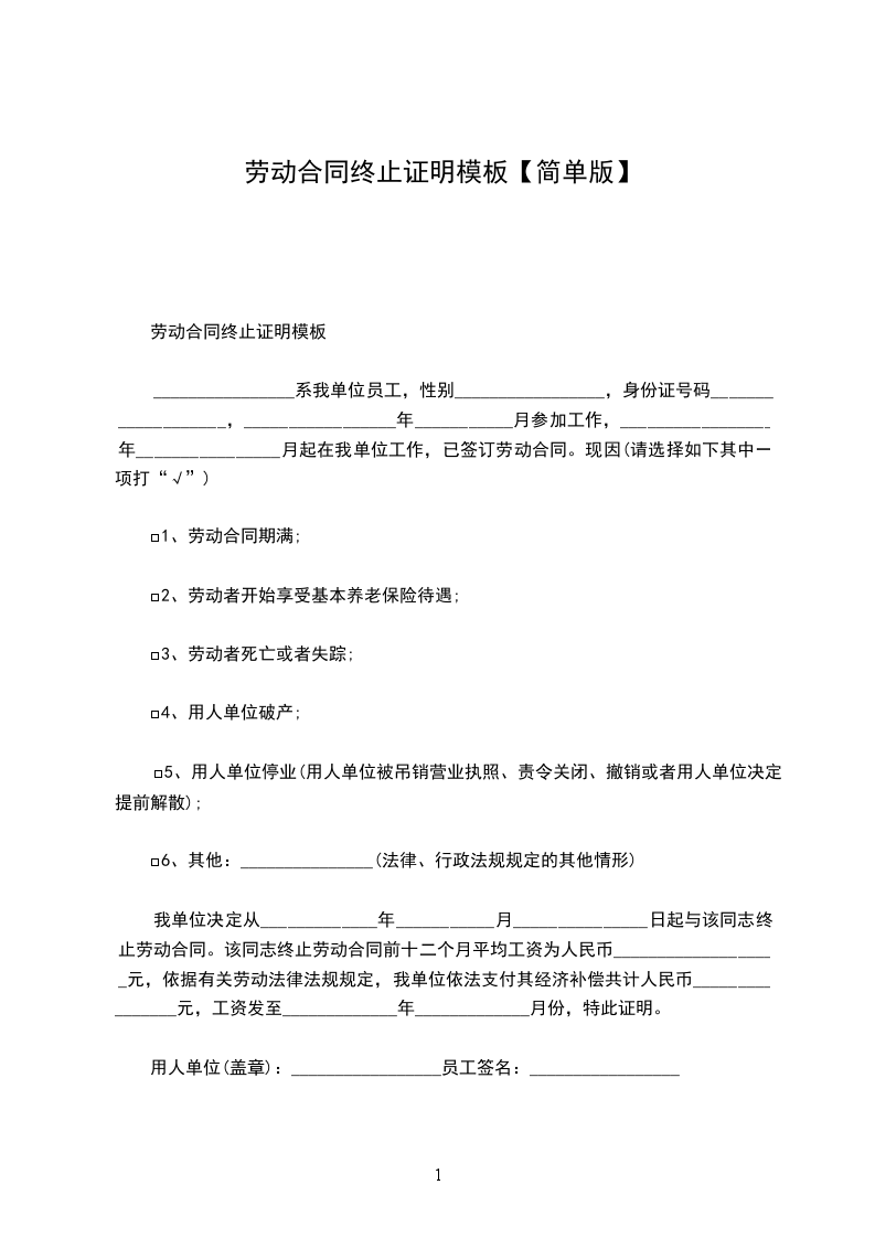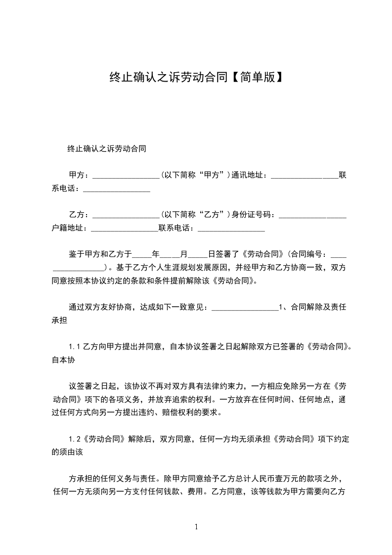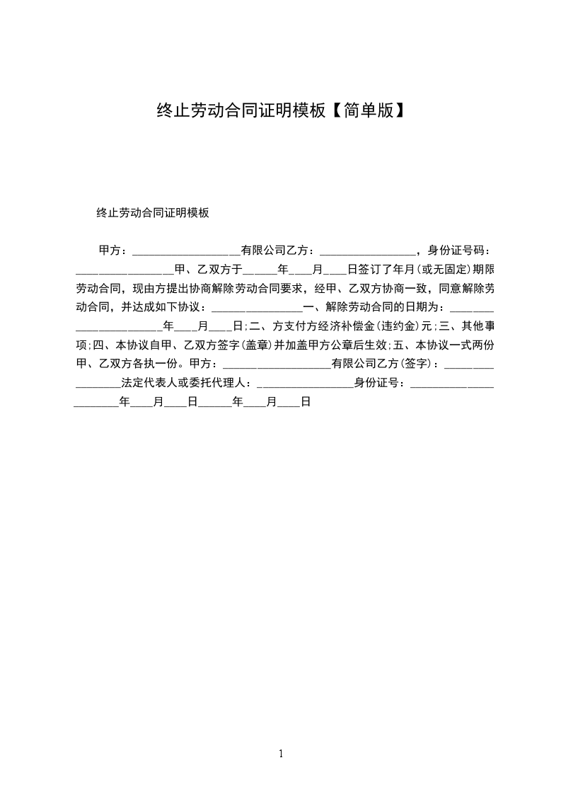 1、自_____________年__________月__________日起,解除双方签订的劳动合同,双方的权利义务随之终止;
