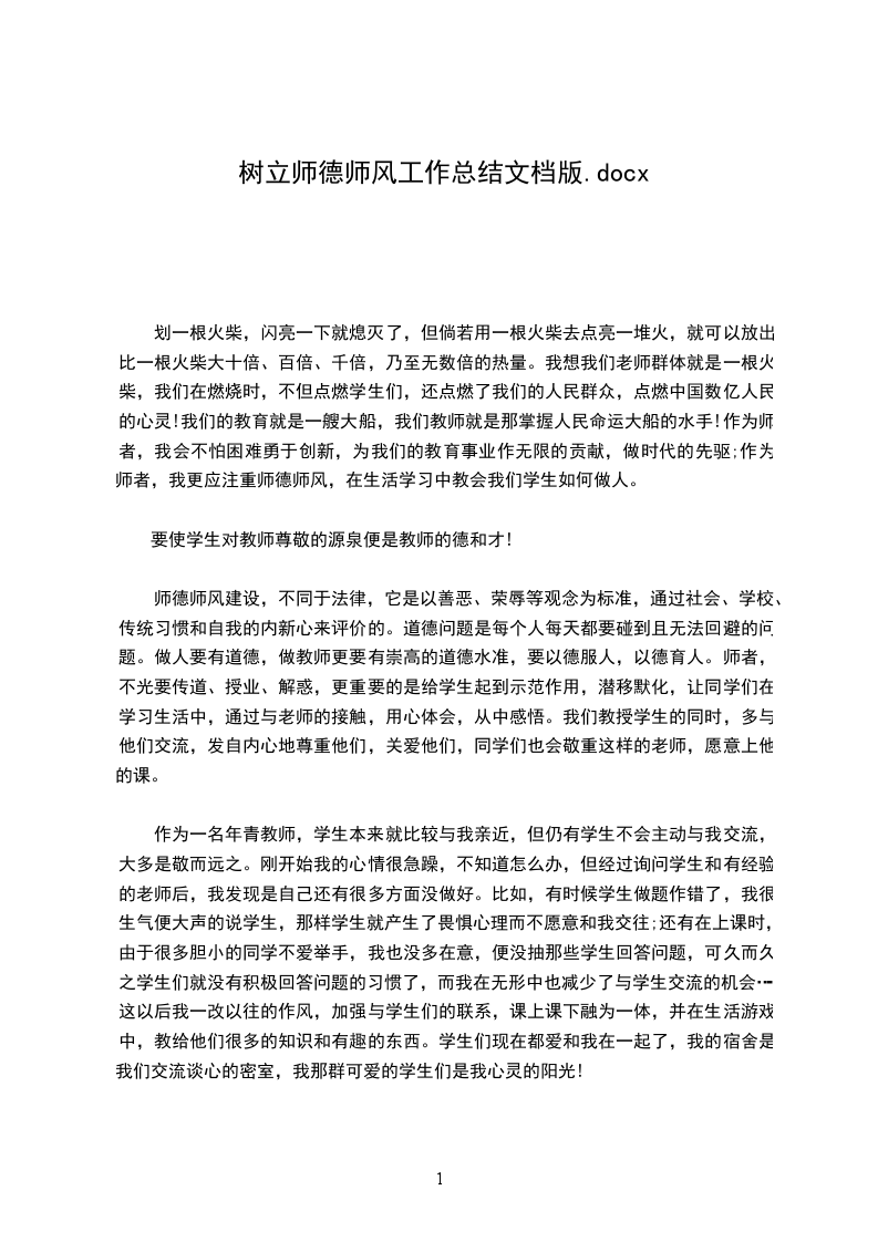 师德师风建设,不同于法律,它是以善恶、荣辱等观念为标准,通过社会、学校、传统习惯和自我的内新心来评价的。道德问题是每个人每天都要碰到且无法回避的问题。做人要有道德,做教师更要有崇高的道德水准,要以德服人,以德育人。师者,不光要传道、授业、解惑,更重要的是给学生起到示范作用,潜移默化,让同学们在学习生活中,通过与老师的接触,用心体会,从中感悟。我们教授学生的同时,多与他们交流,发自内心地尊重他们,关爱他们,同学们也会敬重这样的老师,愿意上他的课。