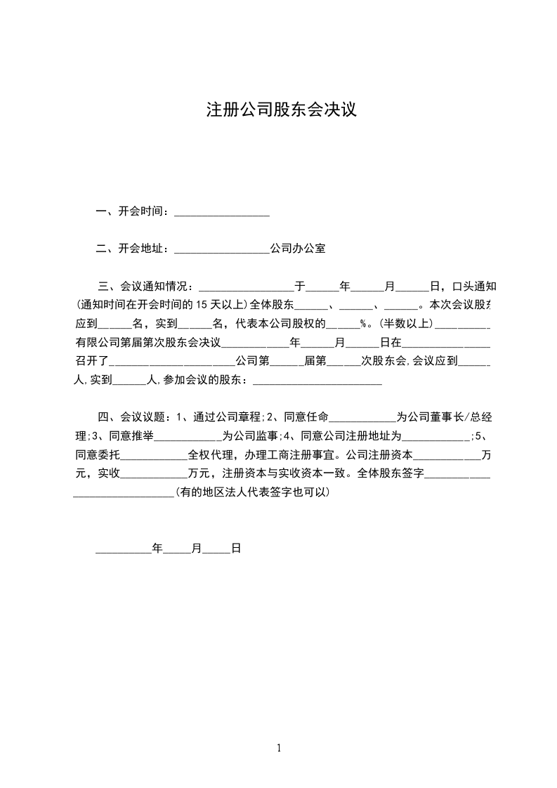根据《中华人民共和国公司法》及本公司章程的有关规定,本次股东会会议由执行董事召集,执行董事________主持,一致通过并决议如下: