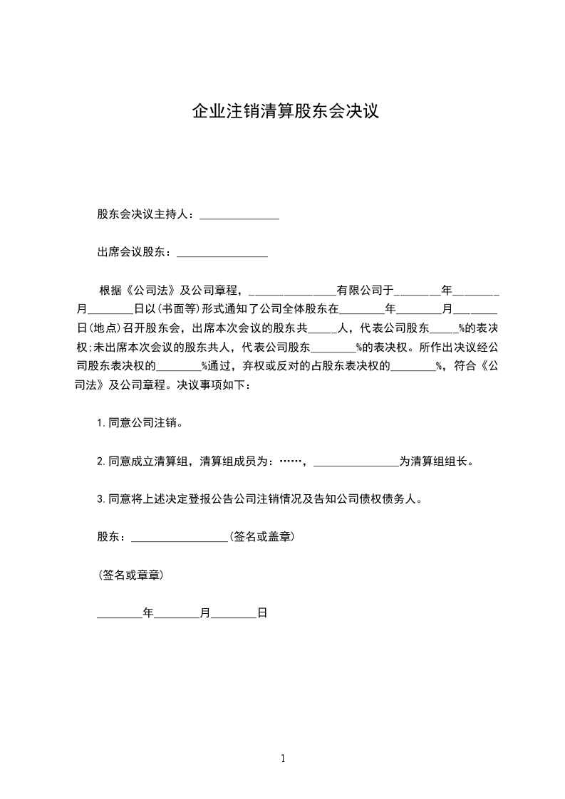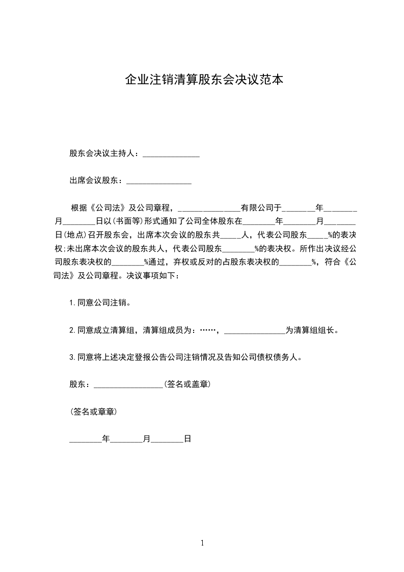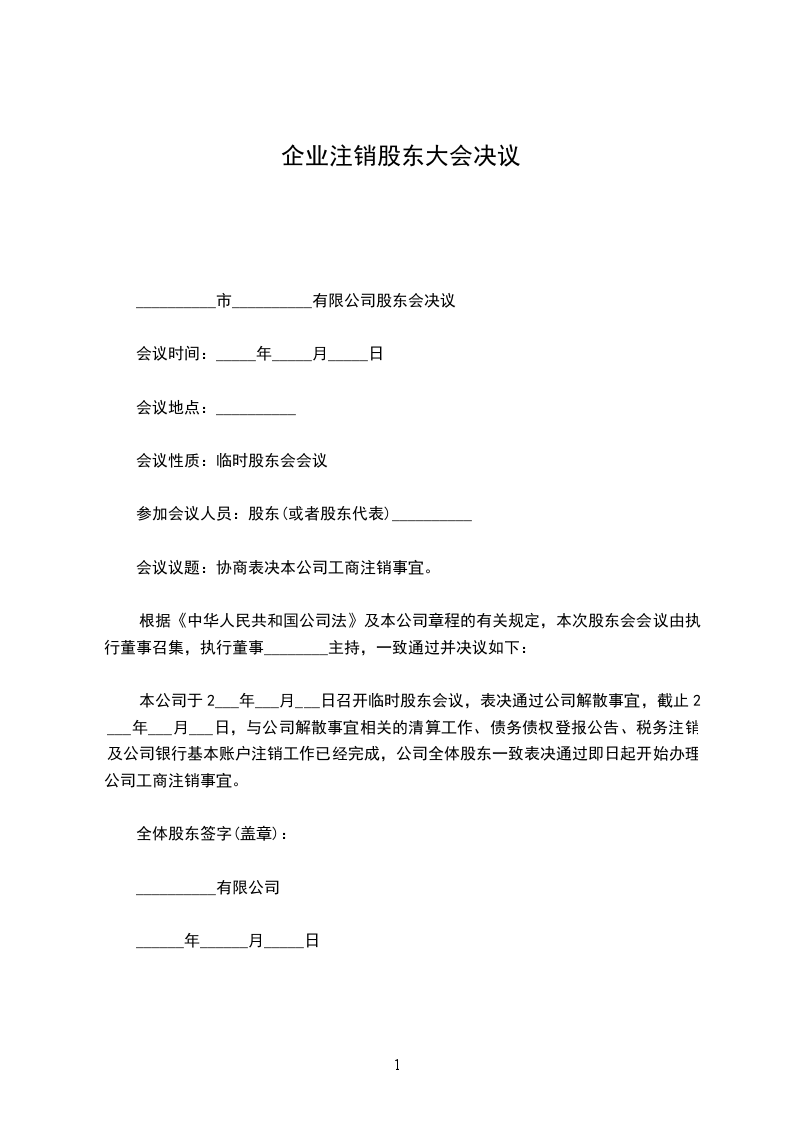 本公司于2___年___月___日召开临时股东会议,表决通过公司解散事宜,截止2___年___月___日,与公司解散事宜相关的清算工作、债务债权登报公告、税务注销及公司银行基本账户注销工作已经完成,公司全体股东一致表决通过即日起开始办理公司工商注销事宜。