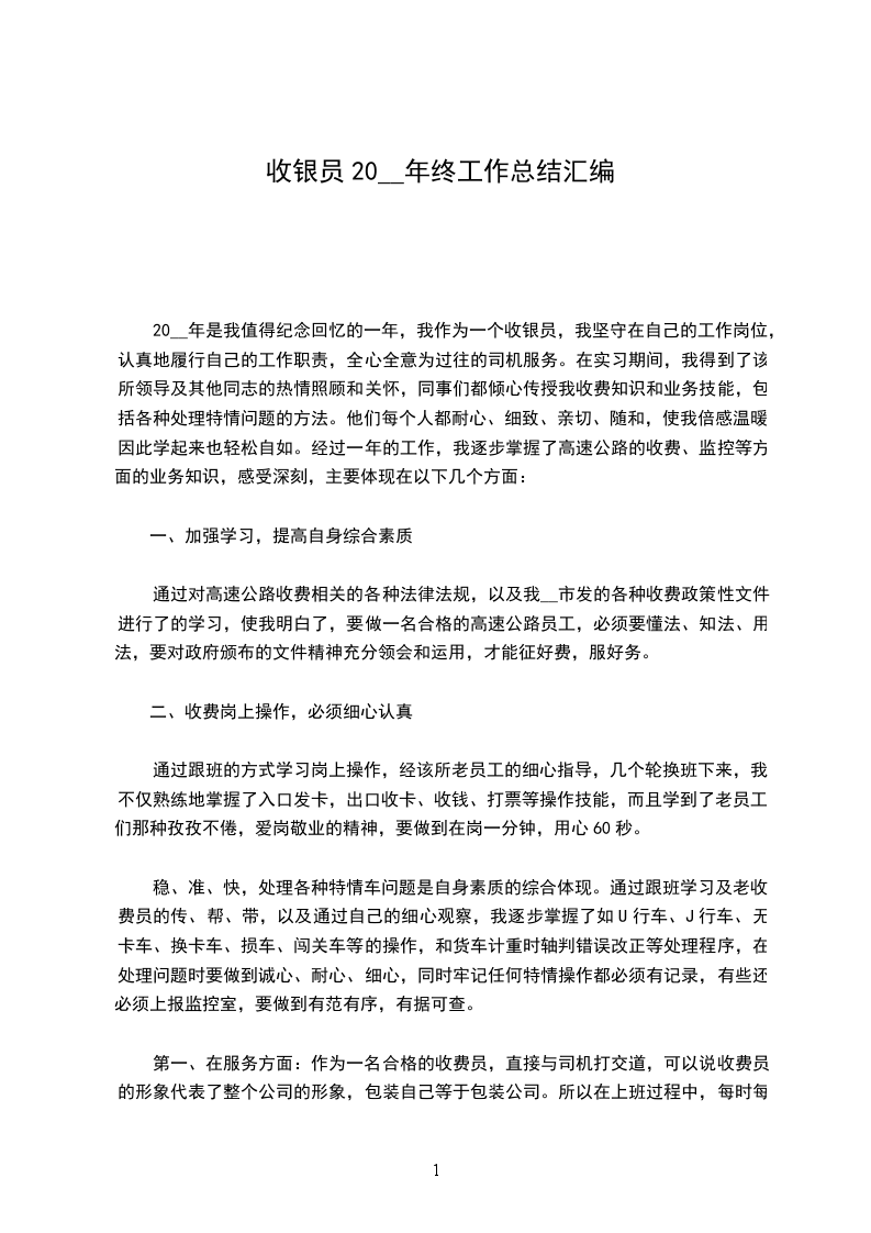 20__年是我值得纪念回忆的一年,我作为一个收银员,我坚守在自己的工作岗位,认真地履行自己的工作职责,全心全意为过往的司机服务。在实习期间,我得到了该所领导及其他同志的热情照顾和关怀,同事们都倾心传授我收费知识和业务技能,包括各种处理特情问题的方法。他们每个人都耐心、细致、亲切、随和,使我倍感温暖,因此学起来也轻松自如。经过一年的工作,我逐步掌握了高速公路的收费、监控等方面的业务知识,感受深刻,主要体现在以下几个方面: