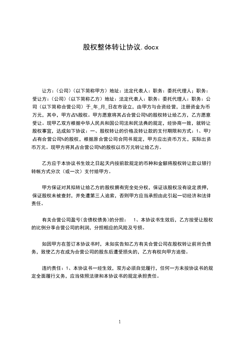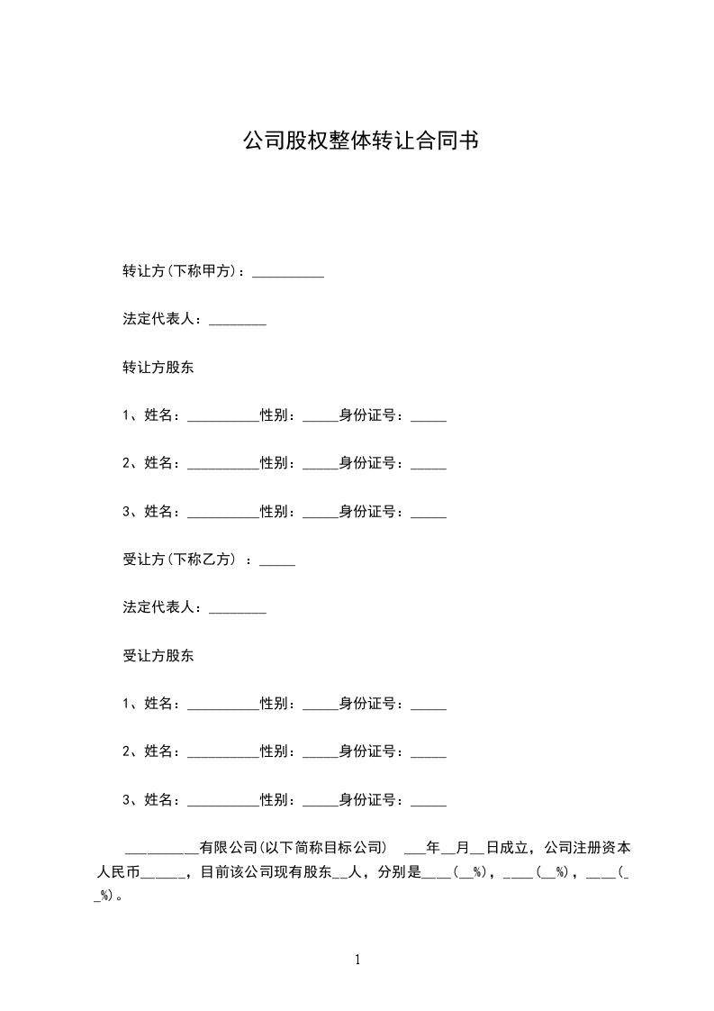 1、甲方将其持有该公司____%的股权转让给乙方;
