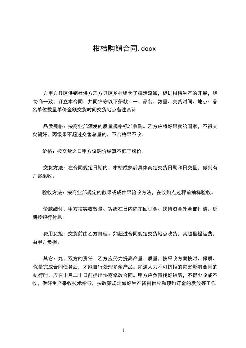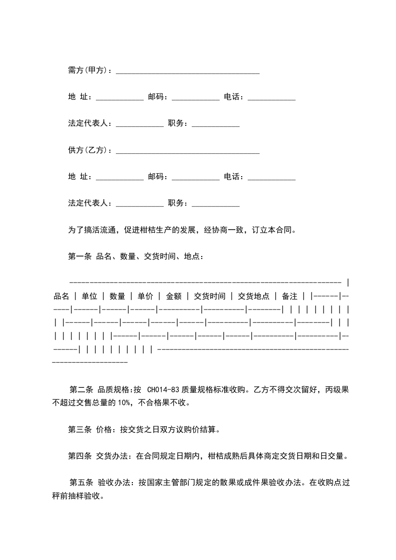 为了搞活流通,促进柑桔生产的发展,经协商一致,订立本合同。
