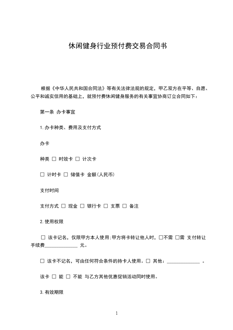根据《中华人民共和国民法典》等有关法律法规的规定,甲乙双方在平等、自愿、公平和诚实信用的基础上,就预付费休闲健身服务的有关事宜协商订立合同如下: