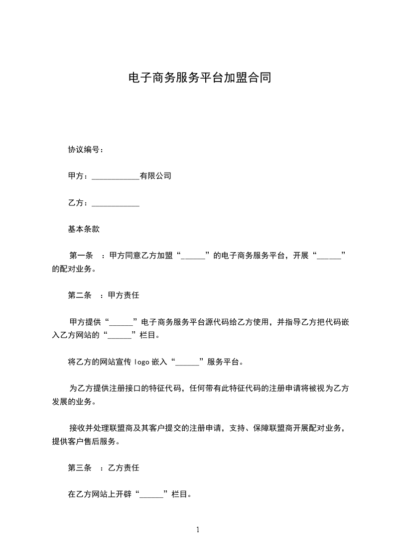 加盟合作协议模板
