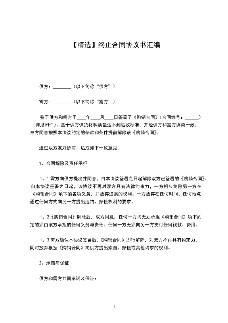 鉴于供方和需方于____年____月____日签署了《购销合同》(合同编号:______)(详见附件)。基于供方供货材料质量达不到验收标准,并经供方和需方协商一致,双方同意按照本协议约定的条款和条件提前解除该《购销合同》。