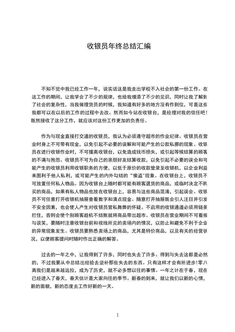 我从事超市收银工作的时间不是太长,自身的素质和业务水平离工作的实际要求还有一定的差距,但我能够克服困难,努力学习,端正工作态度,积极的向其他同志请教和学习,能踏实、认真地做好本职工作,为超市的发展作出了自己应有的贡献。现针对自己在工作中遇到的问题谈谈自己的心得和体会,也算自己20__年上半年工作总结吧。