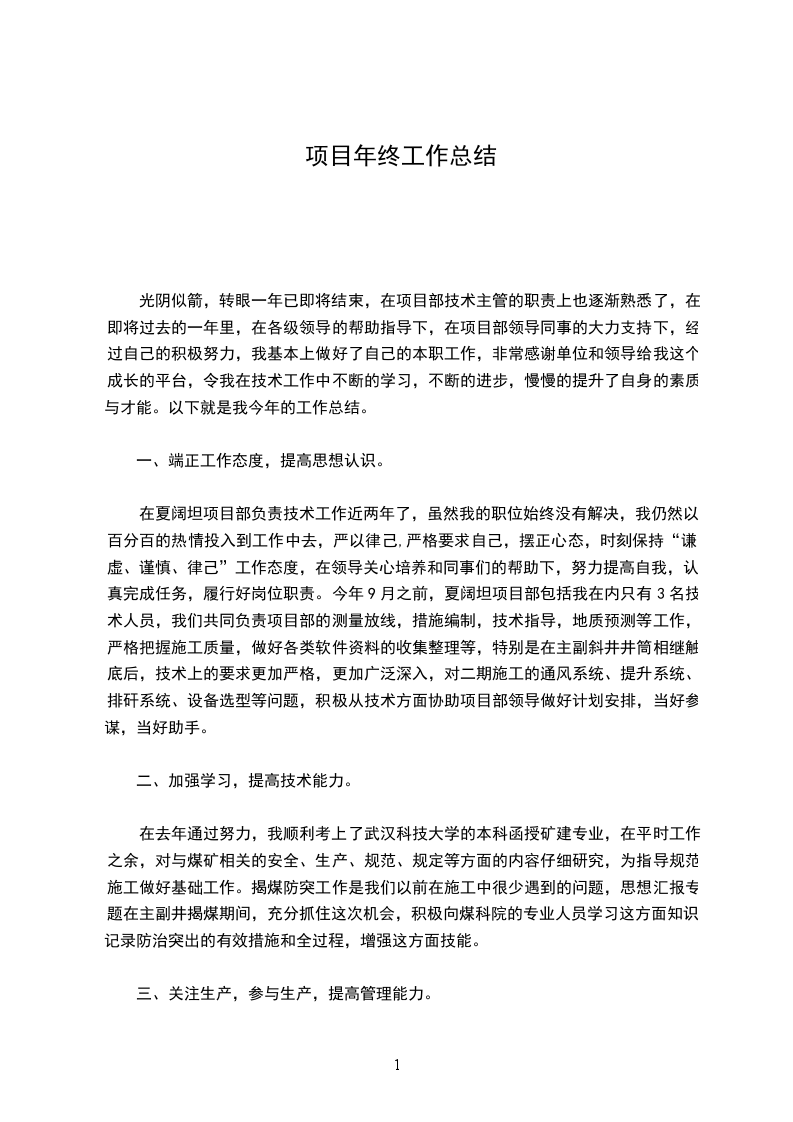 光阴似箭,转眼一年已即将结束,在项目部技术主管的职责上也逐渐熟悉了,在即将过去的一年里,在各级领导的帮助指导下,在项目部领导同事的大力支持下,经过自己的积极努力,我基本上做好了自己的本职工作,非常感谢单位和领导给我这个成长的平台,令我在技术工作中不断的学习,不断的进步,慢慢的提升了自身的素质与才能。以下就是我今年的工作总结。