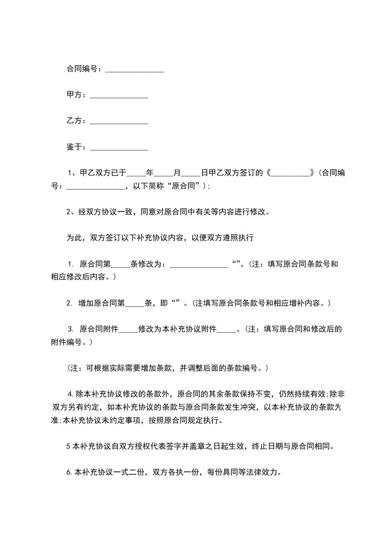 根据甲方与乙方就_____________项目于_____________年__________月__________日签署的《__________合同》(以下简称“原合同”),双方就该合同未尽事宜(或特定事宜)经共同协商,达成补充协议条款如下: