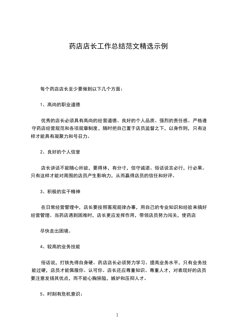 每个药店店长至少要做到以下几个方面: