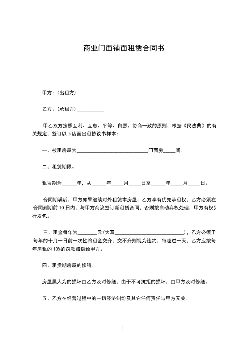 1、租期五年:________年____月____日至________年____月____日。