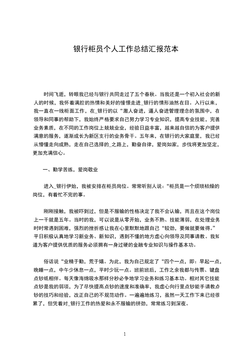 自进入建行起,我一直在营业室工作,在建设银行的“百年之交,相融相通”理念的氛围中,在领导和同事的帮助下,我始终严格要求自己努力学习专业知识,提高专业技能,完善业务素质,在储蓄和对公柜台上兢兢业业,经验日益丰富,越来越自信的为客户提供满意的服务。三年多来,在银行的大家庭里,我已经从懵懂走向成熟,走在自己选择的路上,勤奋自律,爱岗如家,步伐将更加坚定,更加充满信心。