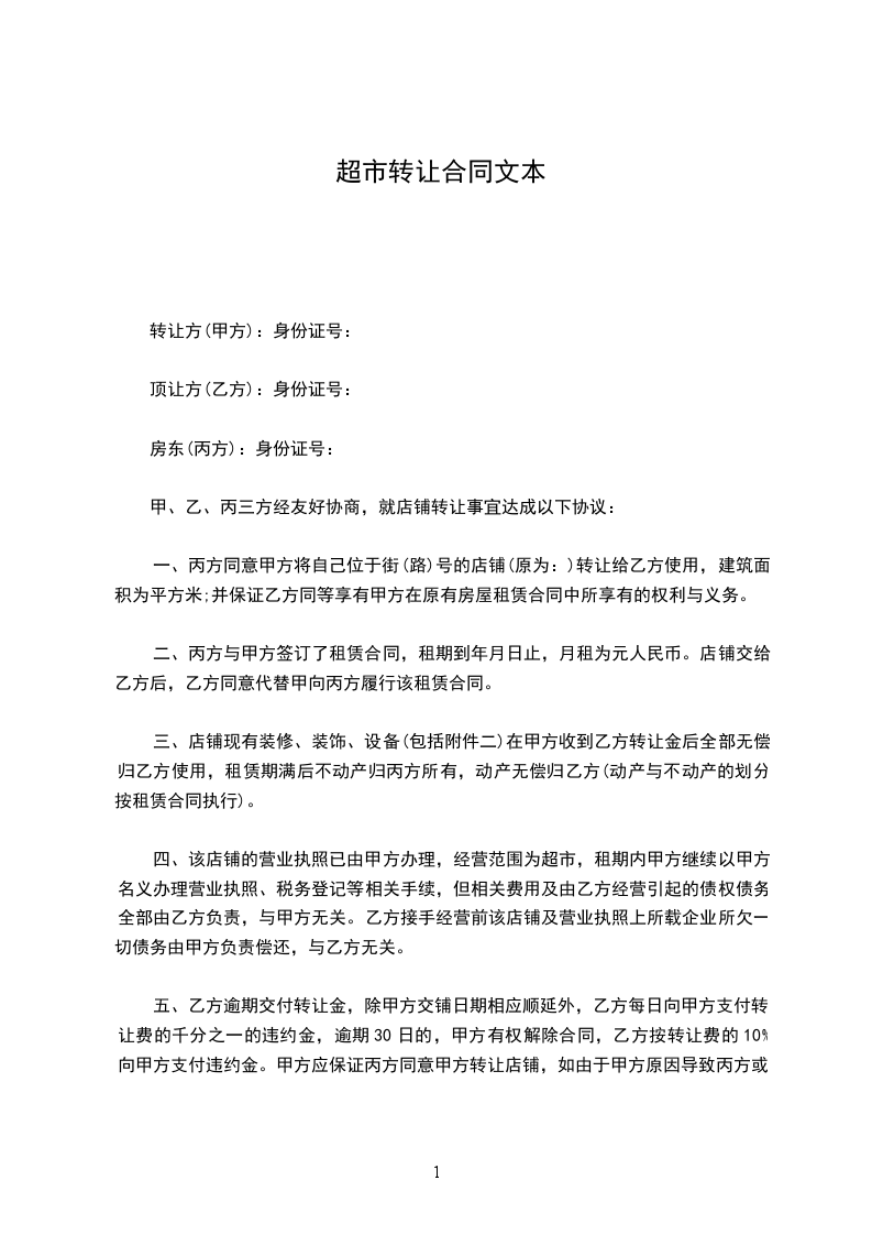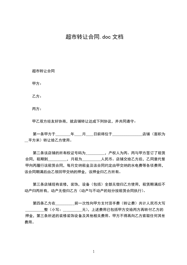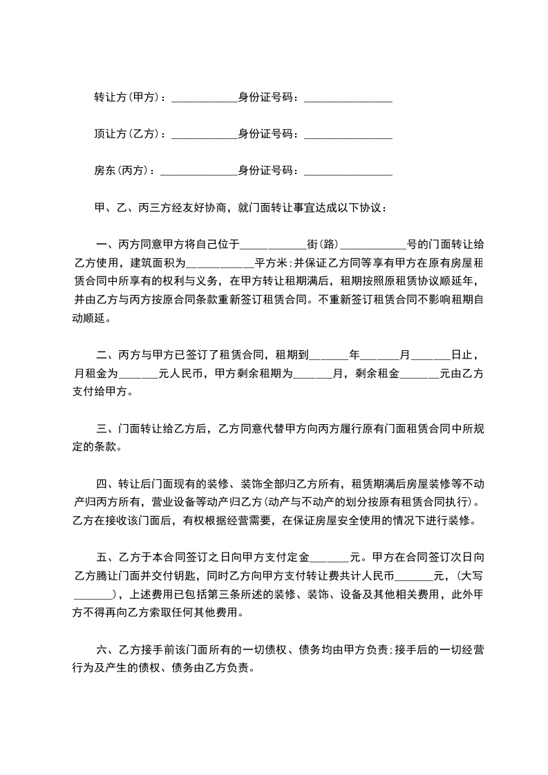 甲、乙、丙三方经友好协商,就店铺转让事宜达成以下协议: