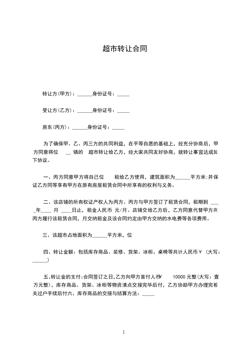 一、丙方同意甲方将自己位于街(路)号的店铺(原为:)转让给乙方使用,建筑面积为_____平方米;并保证乙方同等享有甲方在原有房屋租赁合同中所享有的权利与义务。
