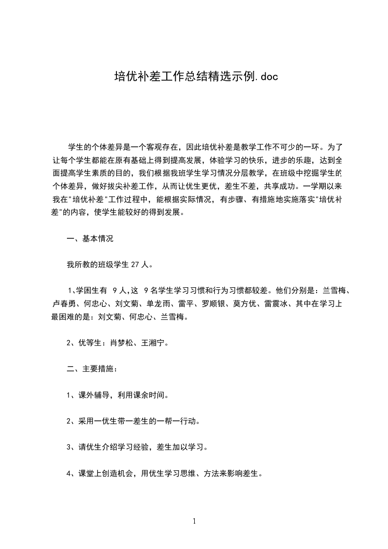 1、学困生有9人,这9名学生学习习惯和行为习惯都较差。他们分别是:兰雪梅、卢春勇、何忠心、刘文菊、单龙雨、雷平、罗顺银、莫方优、雷震冰、其中在学习上最困难的是:刘文菊、何忠心、兰雪梅。