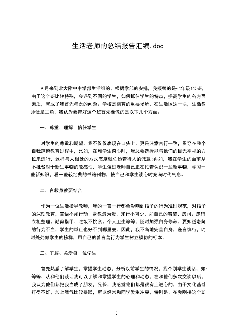 9月来到北大附中中学部生活组的,根据学部的安排,我接替的是七年级(4)班,由于这个班比较特殊,会遇到不同的学生,如何抓住学生的特点,提高学生的各方面素质,就成了我首先考虑的问题。学校是德育的重要场所,在生活区这一块,生活教师便是主角,我认为要带好这个班首先要做的是以下几个方面。