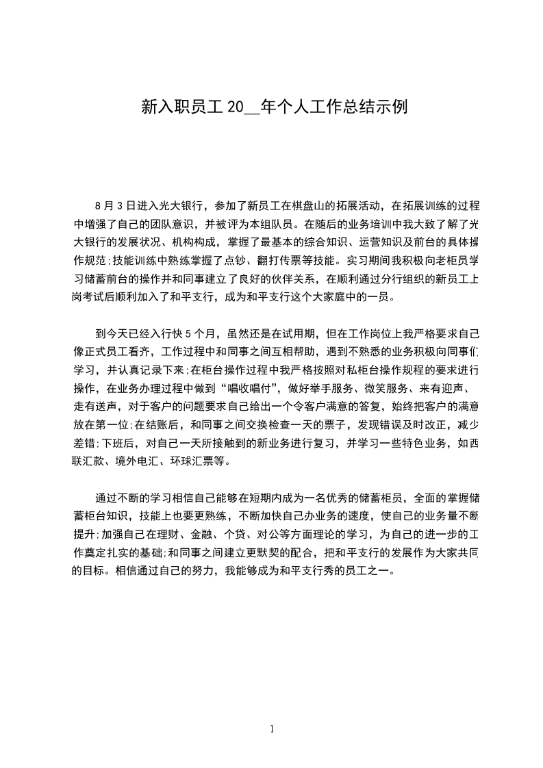 8月3日进入光大银行,参加了新员工在棋盘山的拓展活动,在拓展训练的过程中增强了自己的团队意识,并被评为本组队员。在随后的业务培训中我大致了解了光大银行的发展状况、机构构成,掌握了最基本的综合知识、运营知识及前台的具体操作规范;技能训练中熟练掌握了点钞、翻打传票等技能。实习期间我积极向老柜员学习储蓄前台的操作并和同事建立了良好的伙伴关系,在顺利通过分行组织的新员工上岗考试后顺利加入了和平支行,成为和平支行这个大家庭中的一员。