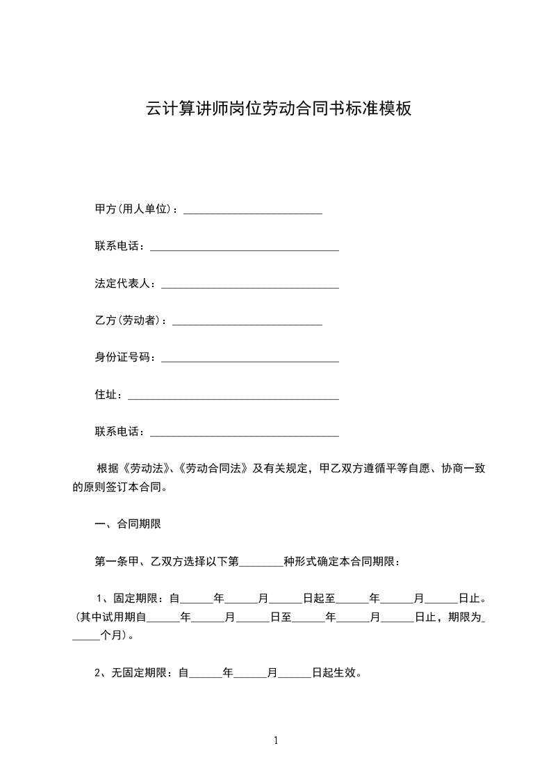 一、合同期限