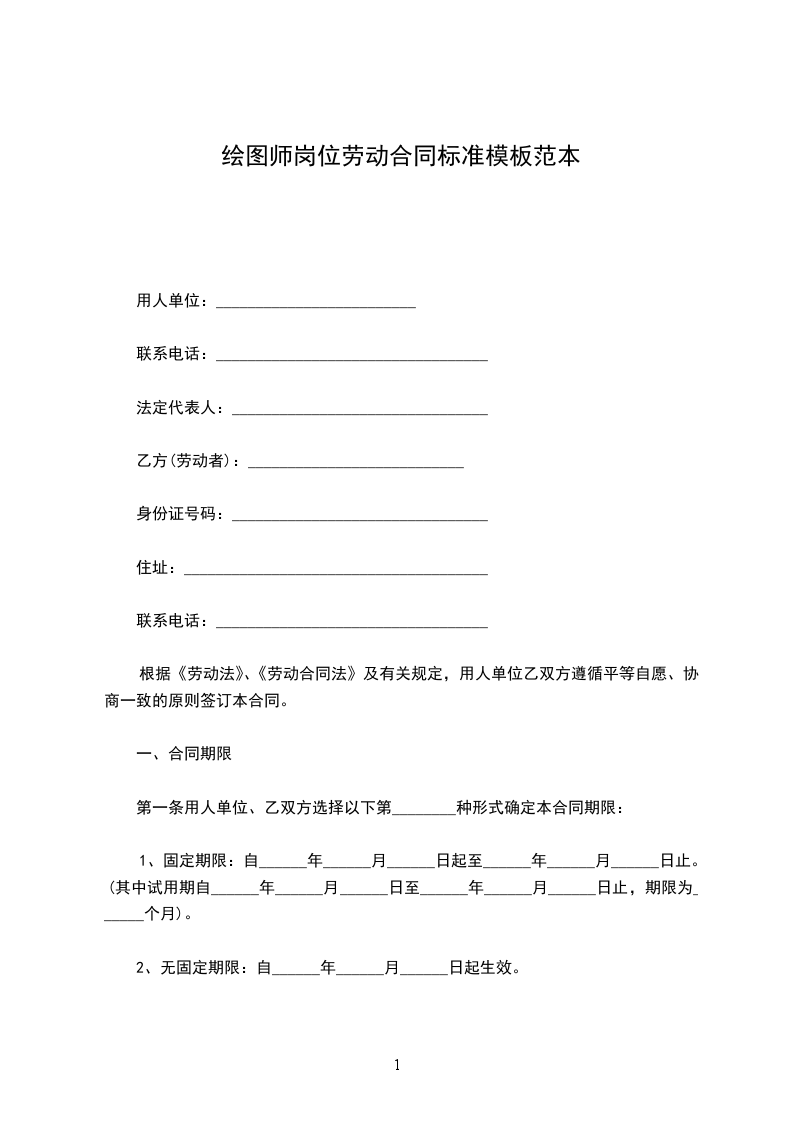 (一)本合同为固定期限劳动合同。