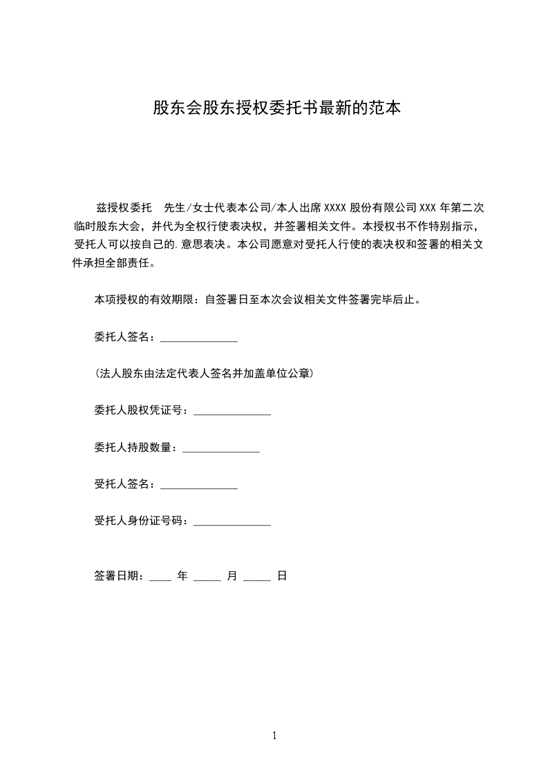 兹授权委托 先生/女士代表本公司/本人出席XXXX股份有限公司XXX年第二次临时股东大会,并代为全权行使表决权,并签署相关文件。本授权书不作特别指示,受托人可以按自己的.意思表决。本公司愿意对受托人行使的表决权和签署的相关文件承担全部责任。