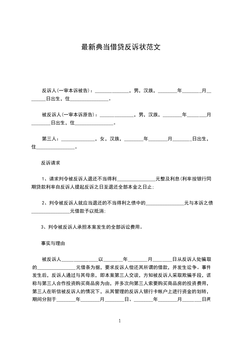 反诉人(一审本诉被告):______________,男,汉族,________年________月________日出生,住________________。