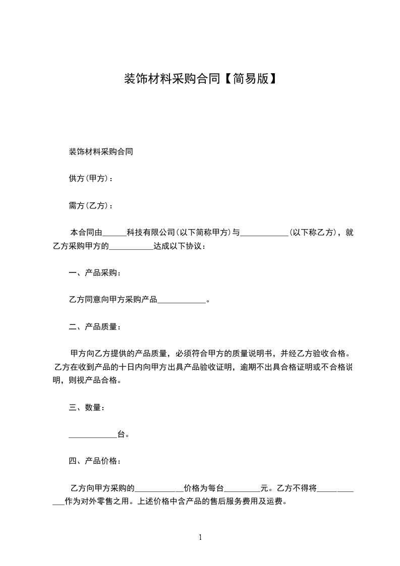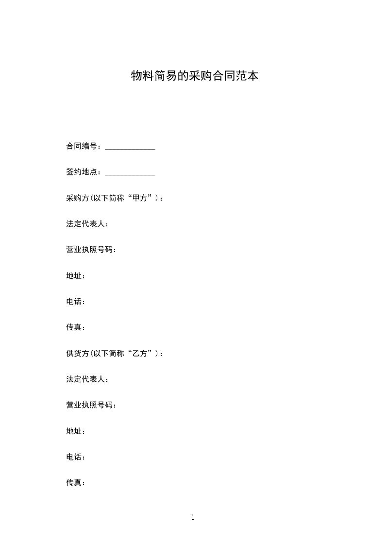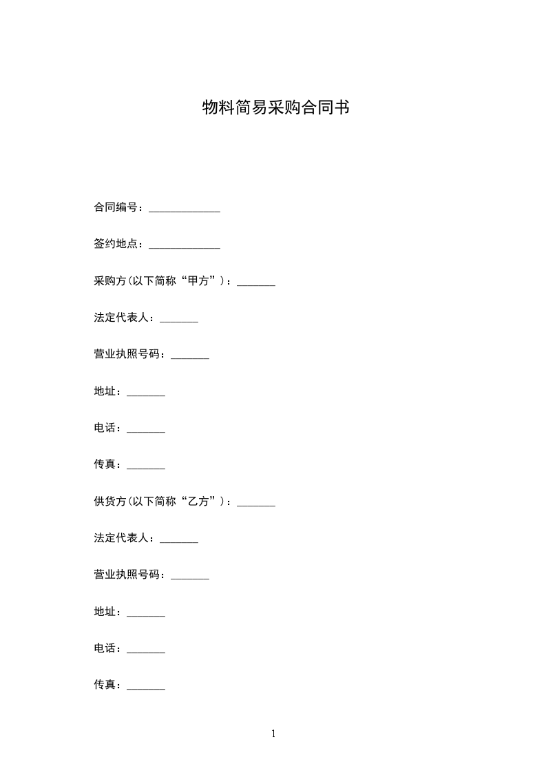 根据《中华人民共和国民法典》及甲乙双方交易意愿的要求,经双方协商一致,签订本物料采购简易合同。