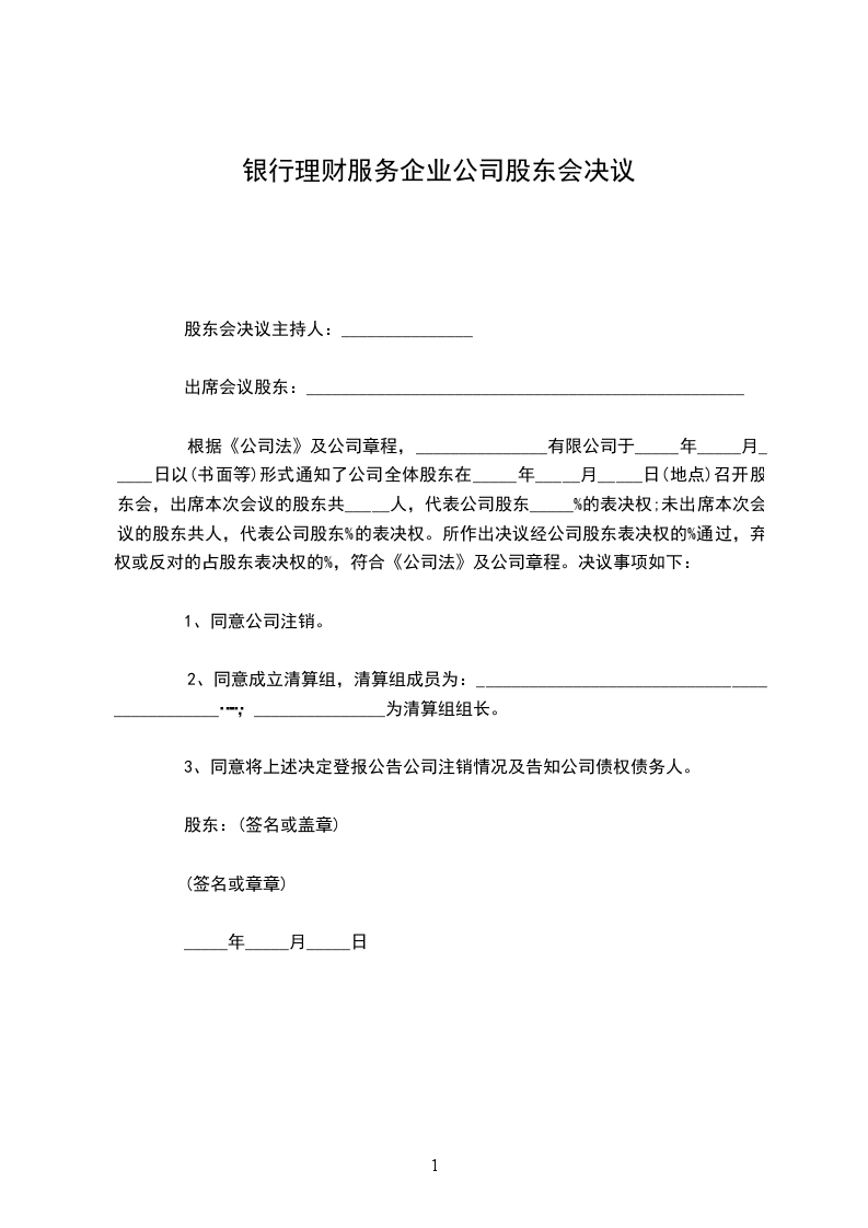 根据《公司法》、《公司登记管理条例》和公司章程规定,本公司于_______年_______月_______日以电话形式通知全体股东在_______年_______月_______日在本公司会议室召开股东大会,出席会议的股东_______人,代表企业股东_______%的表决权,经股东大会表决_______%一致通过,弃权或反对占股东比例_______%,符合《公司法》规定,决议事项如下: