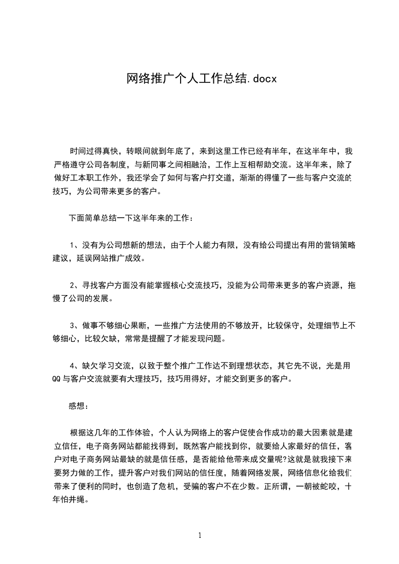 以上就是我做网络推广工作以来简单的工作总结,有许多地方需要进一步的改进!