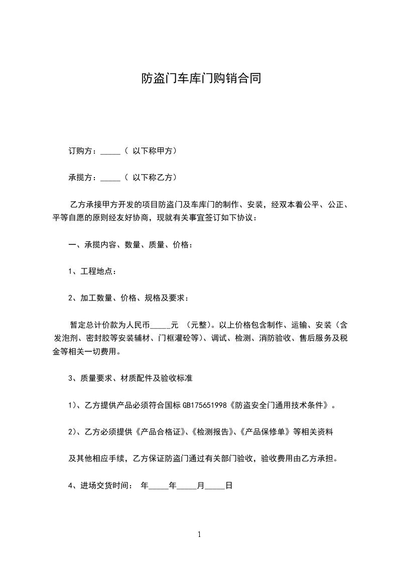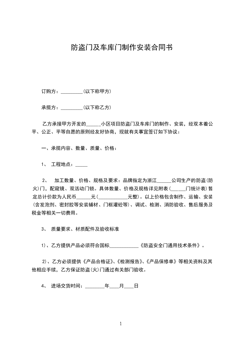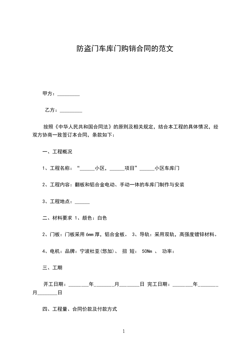 2、合同价款: 铝合车库电动卷帘门(离合电机):________元/樘