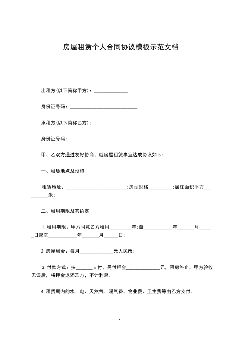 租赁地址:_________________________;房型规格__________;居住面积平方__________米;