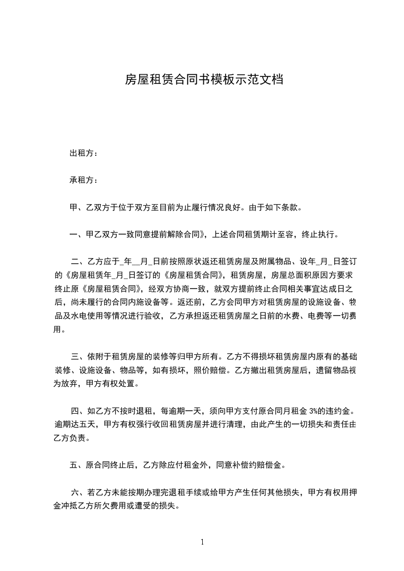 5.在租赁期内,甲、乙双方如有一方有特殊情况需解除协议的,必须提前一个月通知对方,协商后解除本合同。