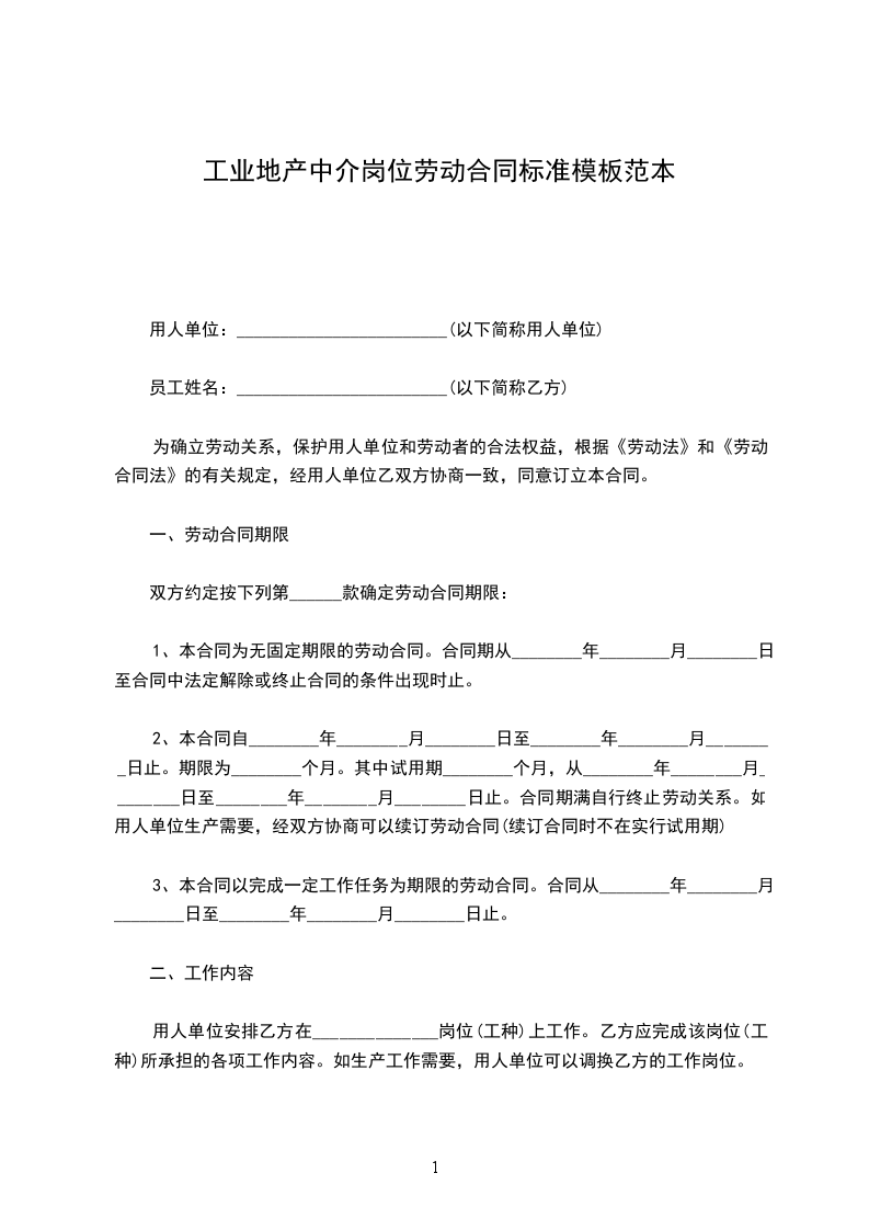 用人单位安排乙方在______________岗位(工种)上工作。乙方应完成该岗位(工种)所承担的各项工作内容。如生产工作需要,用人单位可以调换乙方的工作岗位。