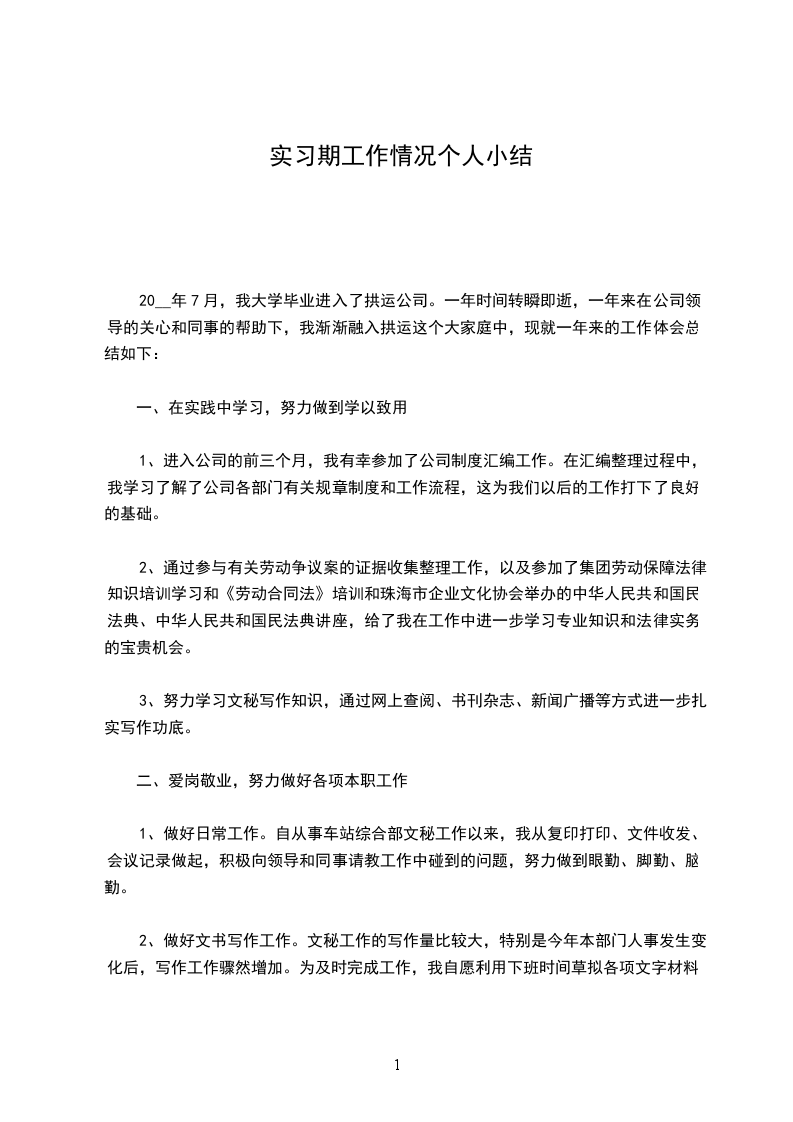 20__年7月,我大学毕业进入了拱运公司。一年时间转瞬即逝,一年来在公司领导的关心和同事的帮助下,我渐渐融入拱运这个大家庭中,现就一年来的工作体会总结如下: