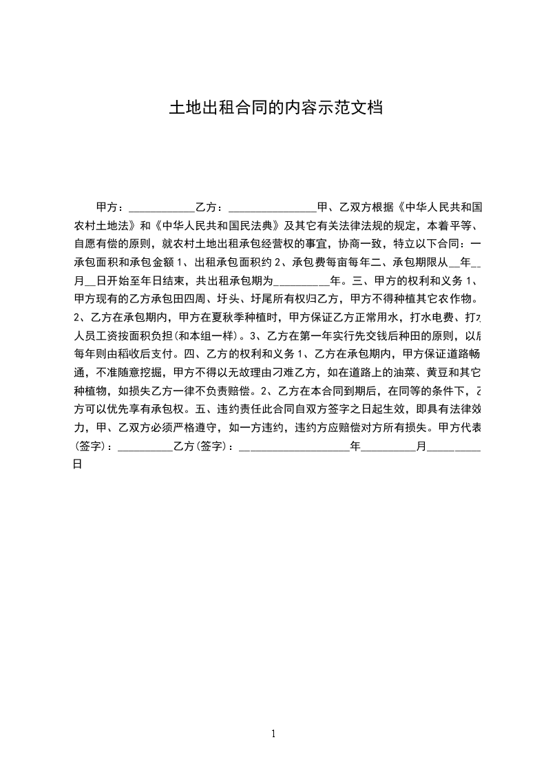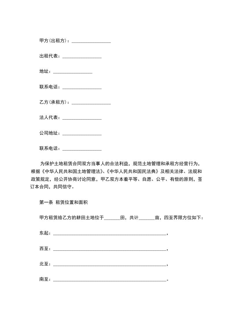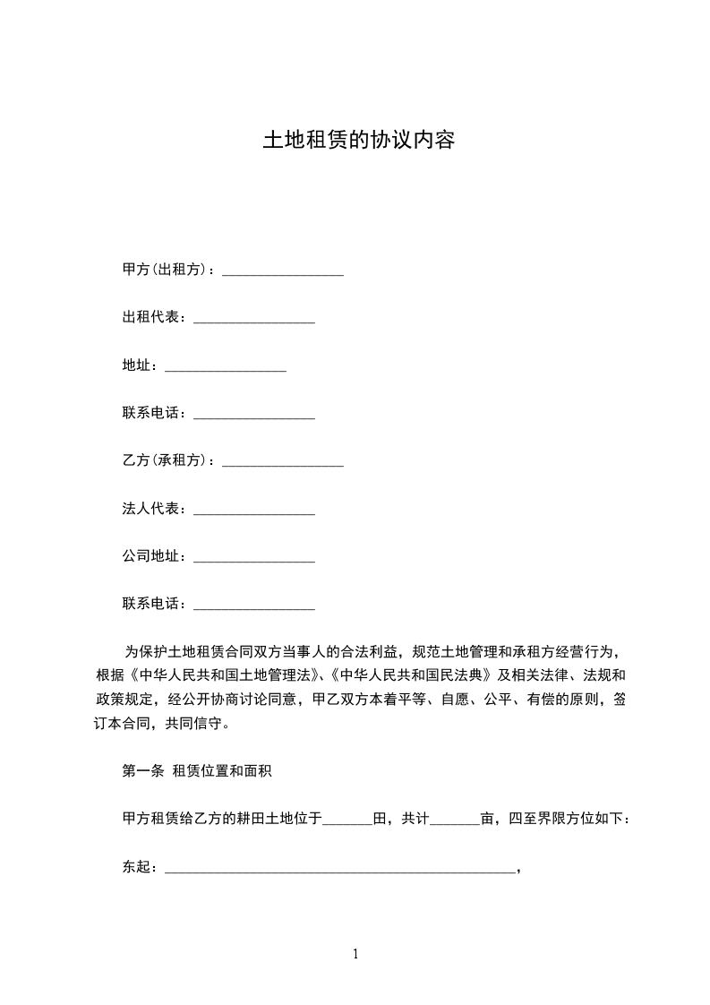 为保护土地租赁合同双方当事人的合法利益,规范土地管理和承租方经营行为,根据《中华人民共和国土地管理法》、《中华人民共和国民法典》及相关法律、法规和政策规定,经公开协商讨论同意,甲乙双方本着平等、自愿、公平、有偿的原则,签订本合同,共同信守。