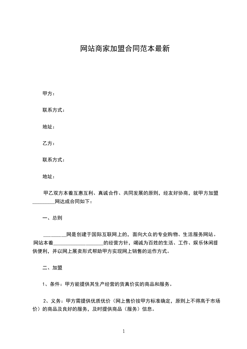 甲乙双方本着互惠互利、真诚合作、共同发展的原则,经友好协商,就甲方加盟_________网达成合同如下: