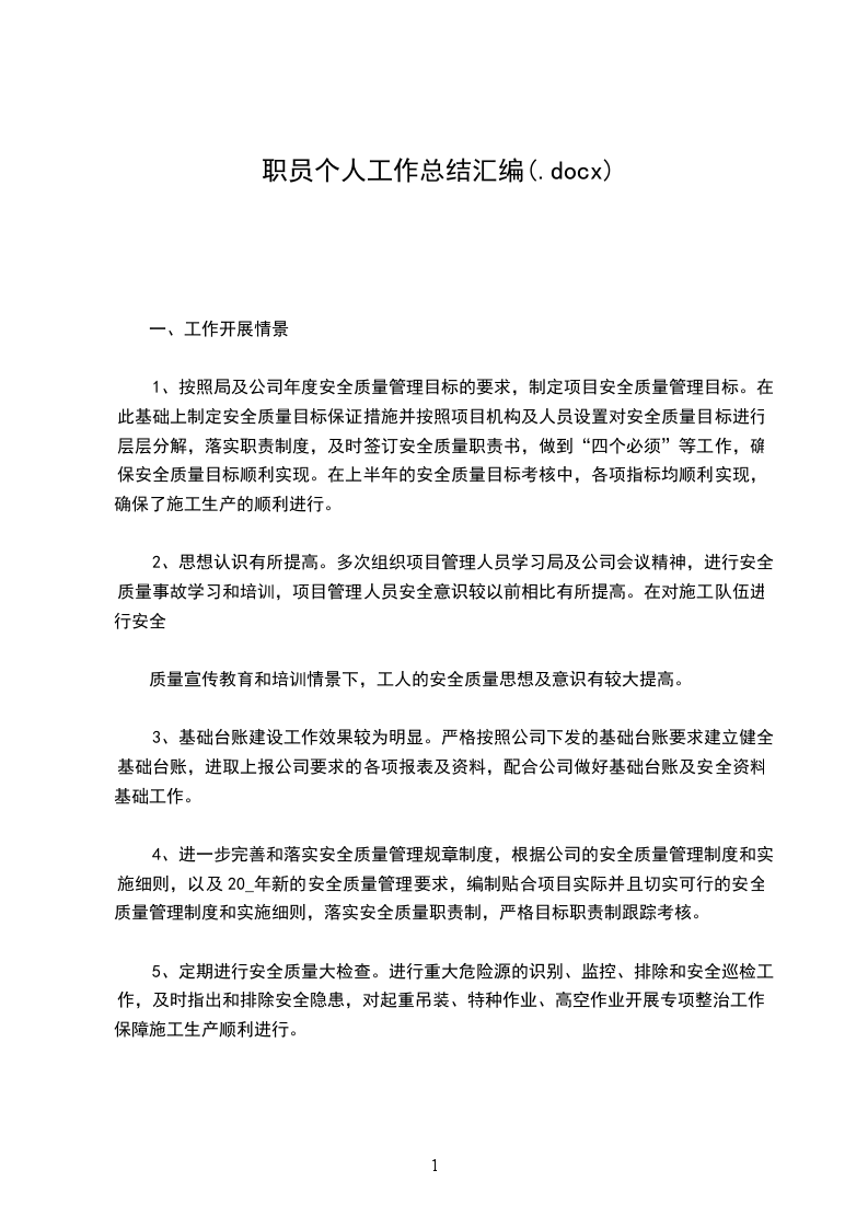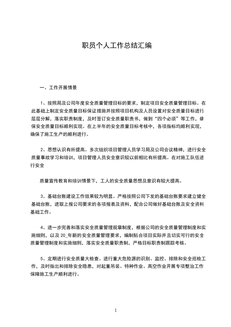 1、按照局及公司年度安全质量管理目标的要求,制定项目安全质量管理目标。在此基础上制定安全质量目标保证措施并按照项目机构及人员设置对安全质量目标进行层层分解,落实职责制度,及时签订安全质量职责书,做到“四个必须”等工作,确保安全质量目标顺利实现。在上半年的安全质量目标考核中,各项指标均顺利实现,确保了施工生产的顺利进行。