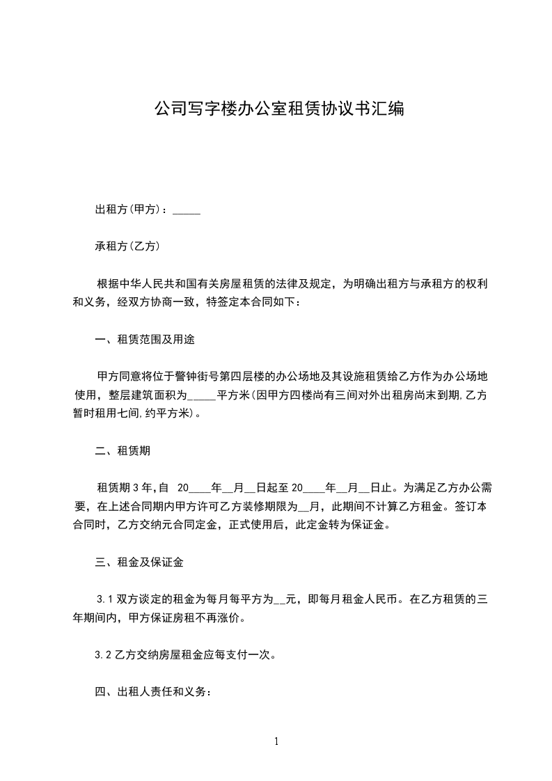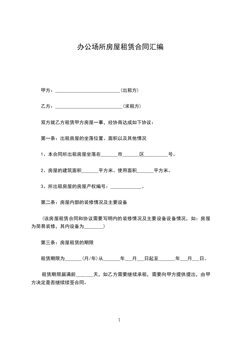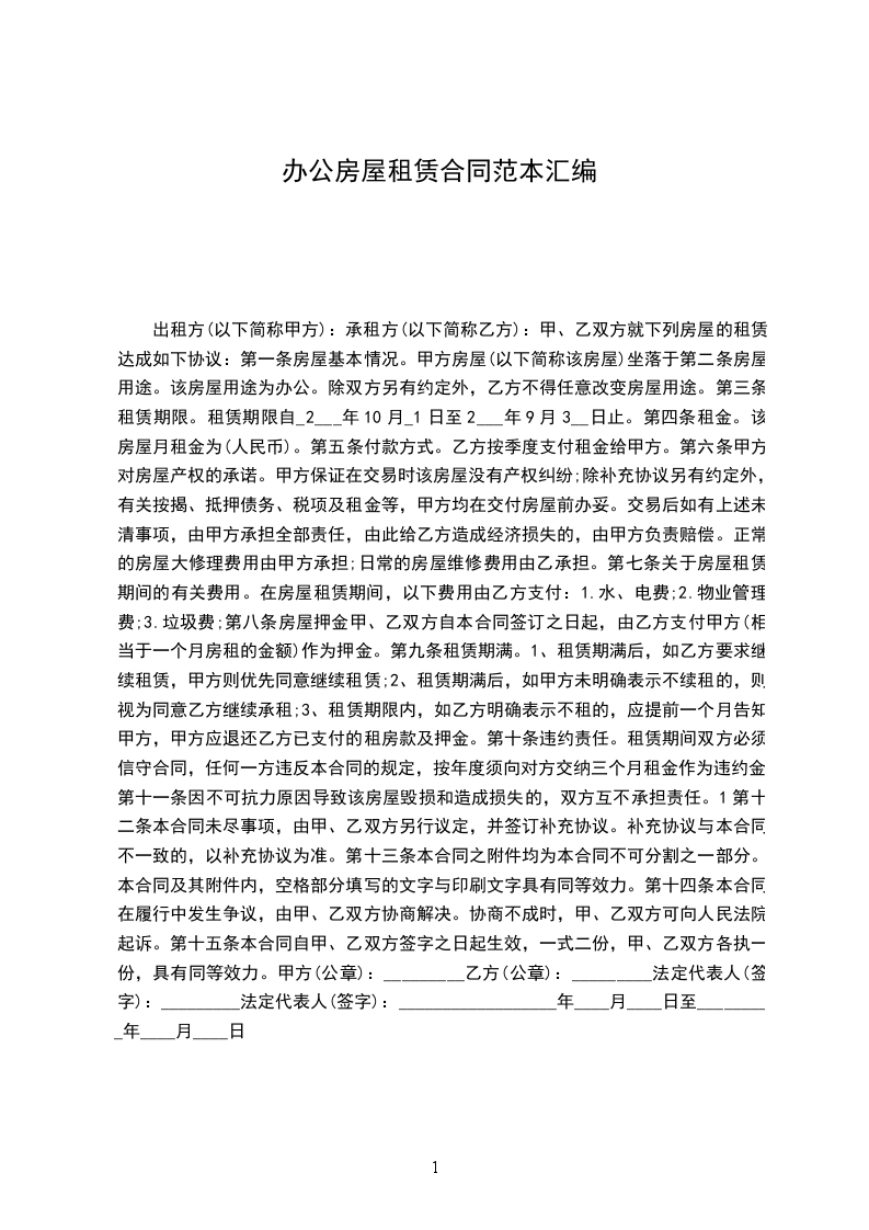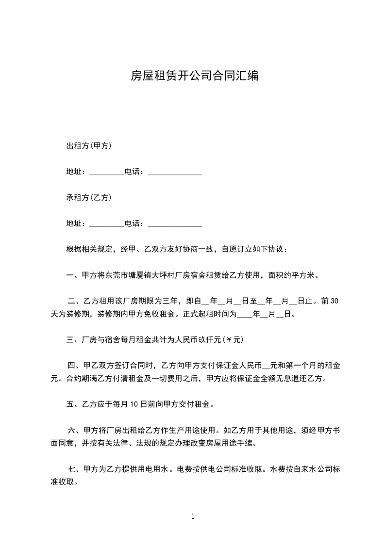 一、租房时间定为 年 月 日起至 年 月 日止。
