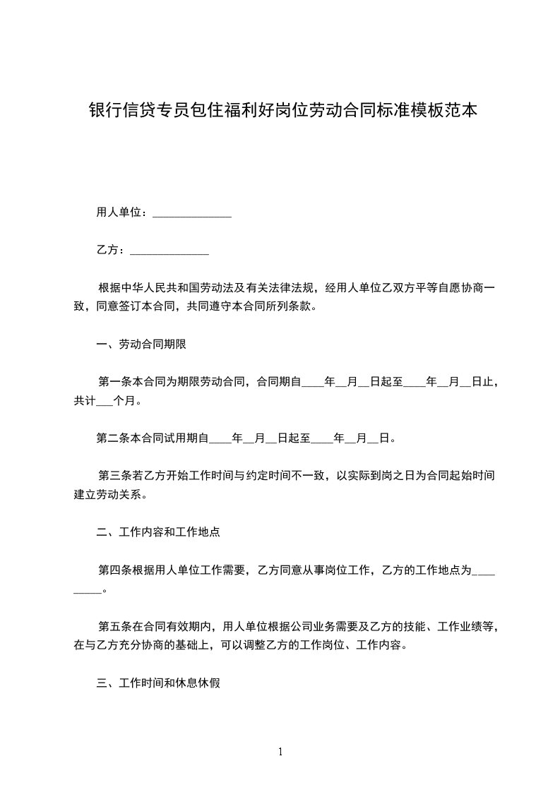 银行信贷专员包住福利好岗位劳动合同标准模板范本