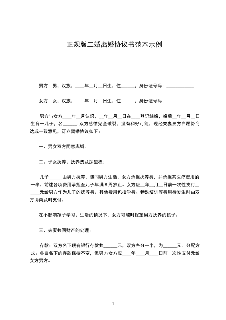 男方与女方____年__月认识,__年__月__日在____登记结婚,婚后__年__月__日生育一儿子,名______.双方感情完全破裂,没有和好可能,现经夫妻双方自愿协商达成一致意见,订立离婚协议如下: