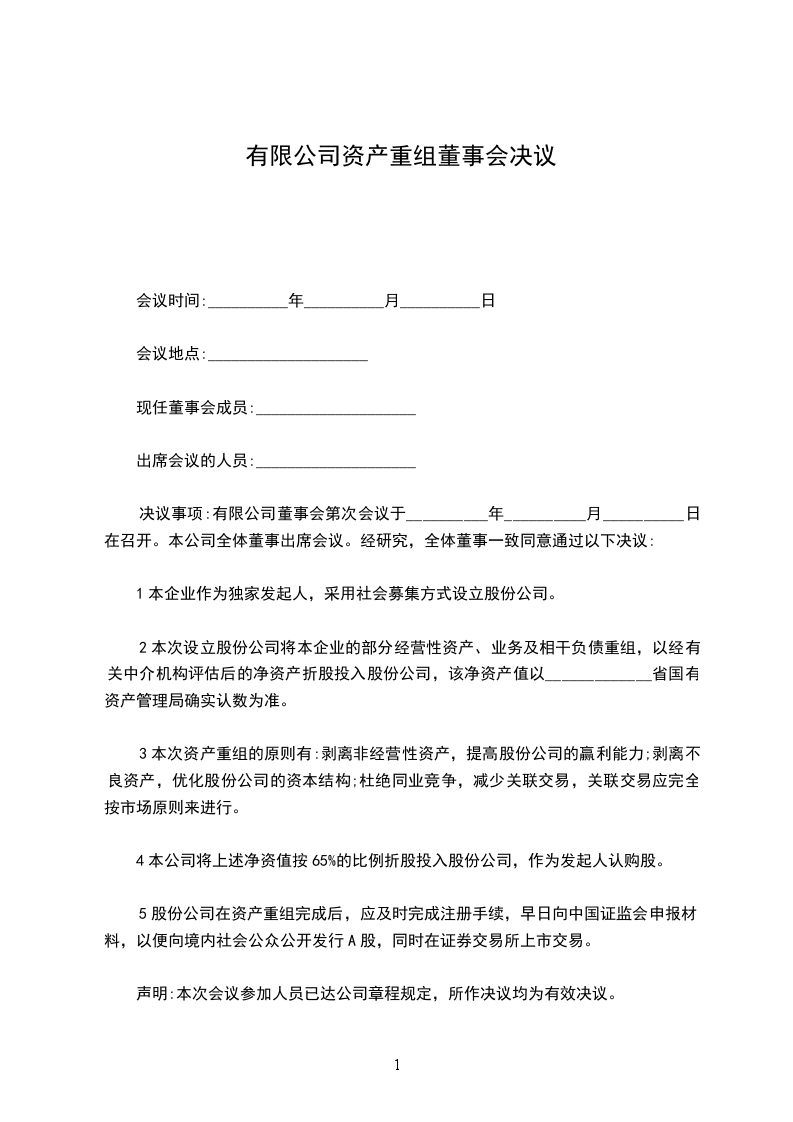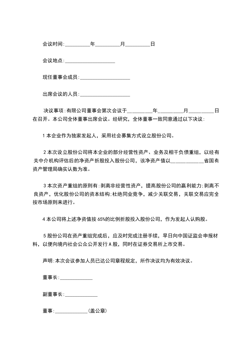 决议事项:有限公司董事会第次会议于__________年__________月__________日在召开。本公司全体董事出席会议。经研究,全体董事一致同意通过以下决议: