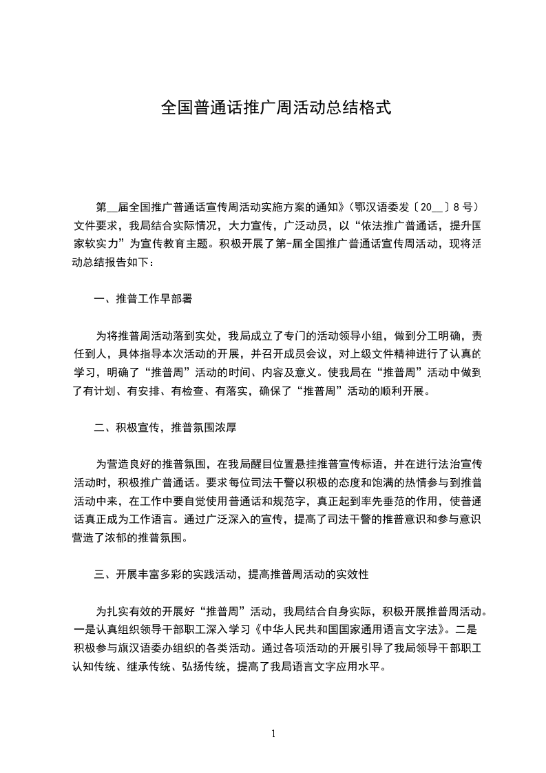 1.各个班级对幼儿开展了一次学好用好普通话的教育活动;并且在各班布置了推普宣传角,以班级为单位开展各项推普活动。