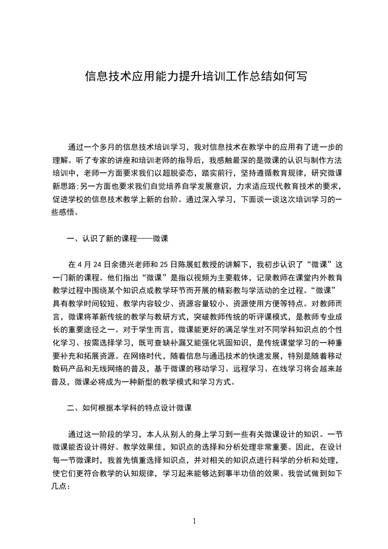 通过一个多月的信息技术培训学习,我对信息技术在教学中的应用有了进一步的理解。听了专家的讲座和培训老师的指导后,我感触最深的是微课的认识与制作方法。培训中,老师一方面要求我们以超脱姿态,踏实前行,坚持遵循教育规律,研究微课新思路;另一方面也要求我们自觉培养自学发展意识,力求适应现代教育技术的要求,促进学校的信息技术教学上新的台阶。通过深入学习,下面谈一谈这次培训学习的一些感悟。