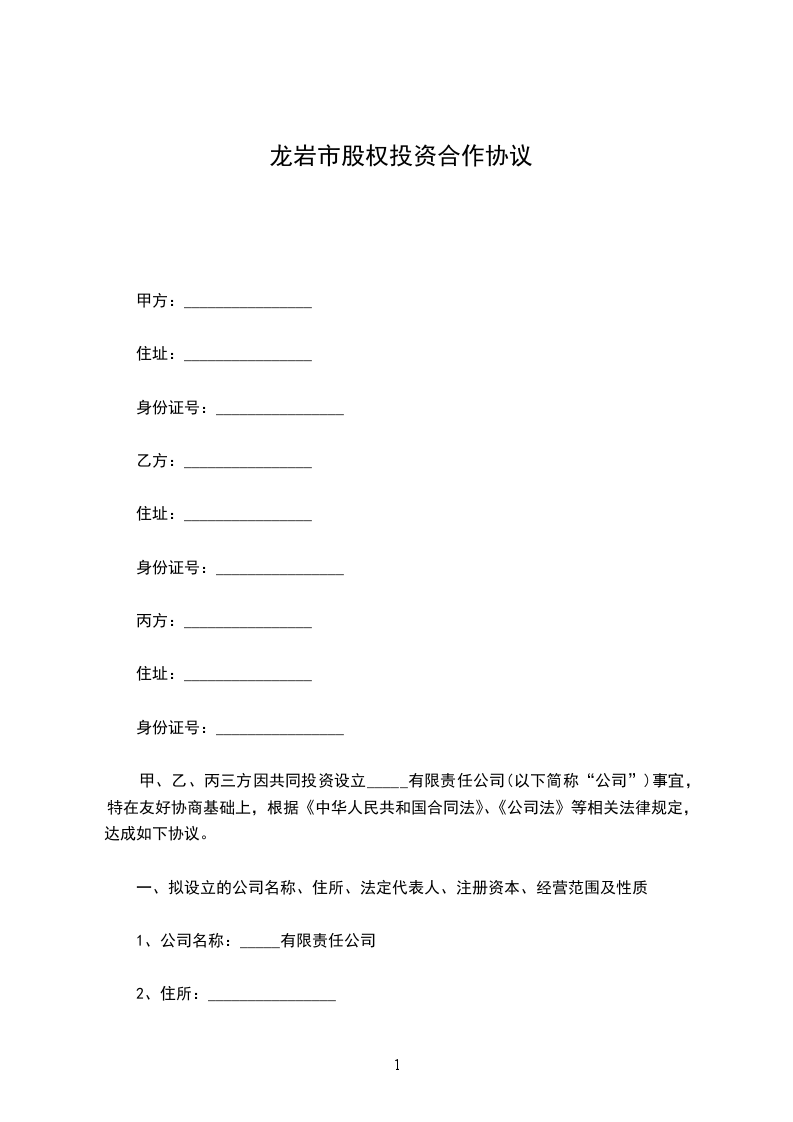 甲、乙、丙三方因共同投资设立_____有限责任公司(以下简称“公司”)事宜,特在友好协商基础上,根据《中华人民共和国民法典》、《公司法》等相关法律规定,达成如下协议。
