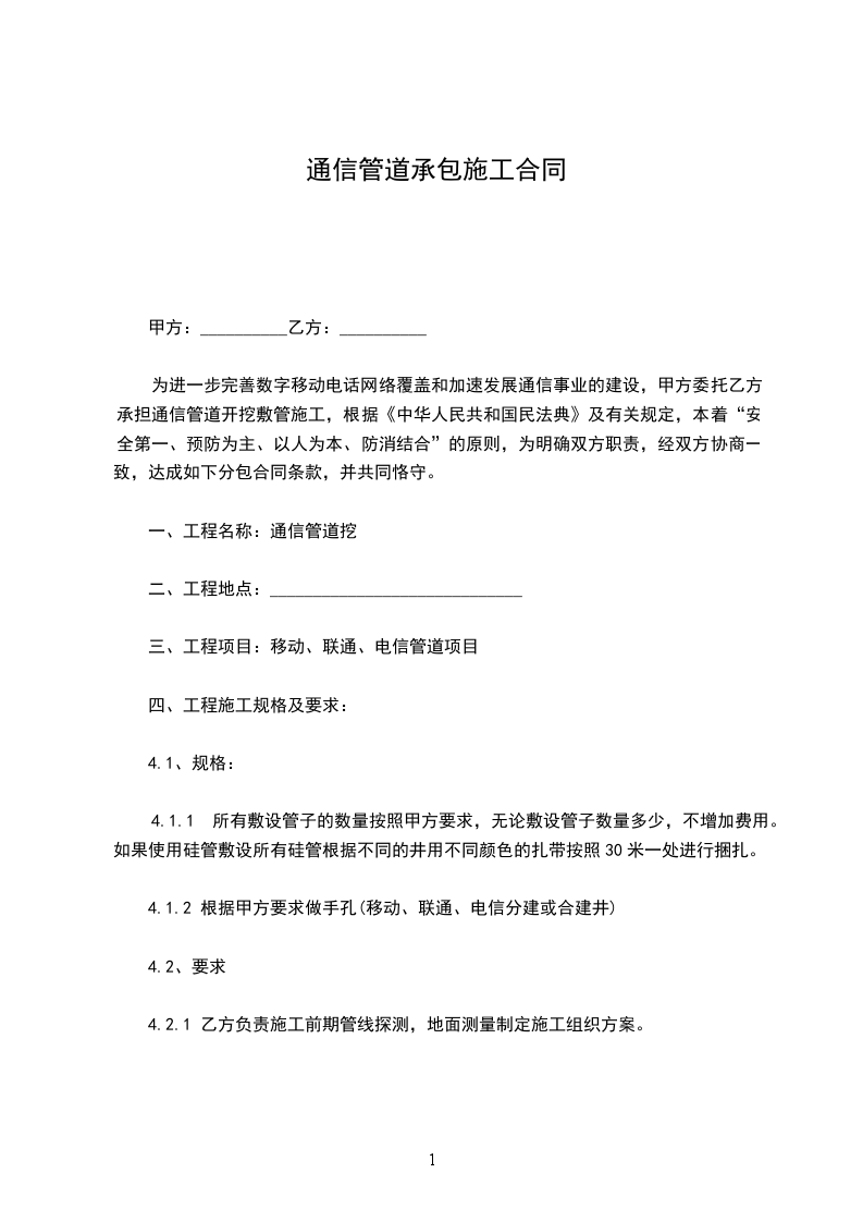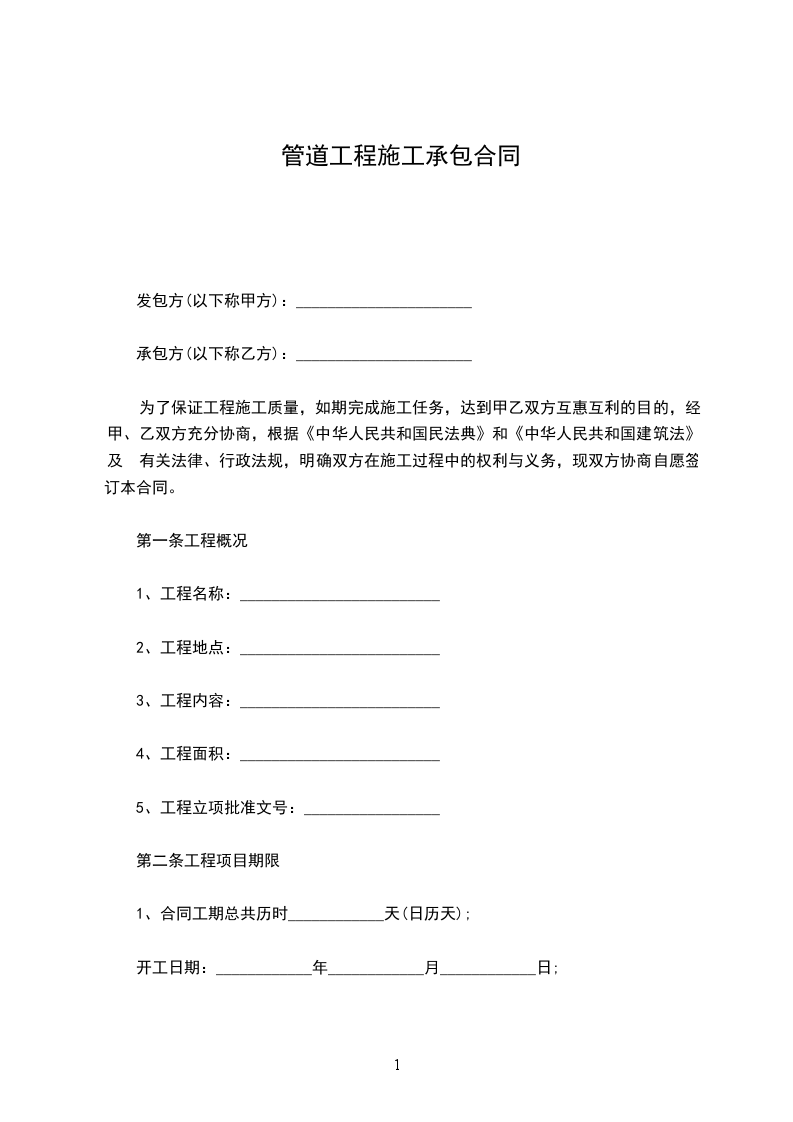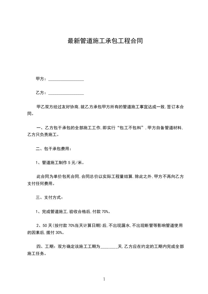 甲乙双方经过友好协商,就乙方承包甲方所有的管道施工事宜达成一致,签订本合同。