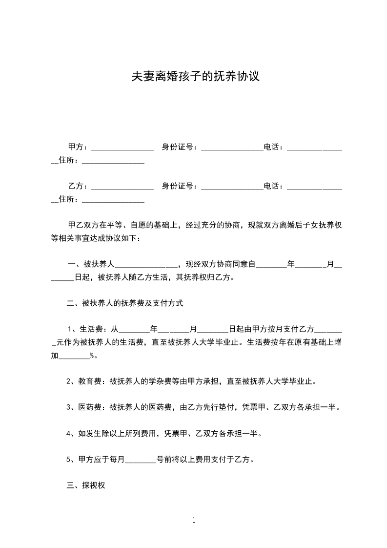 1 、甲方对被抚养人享有探望权。